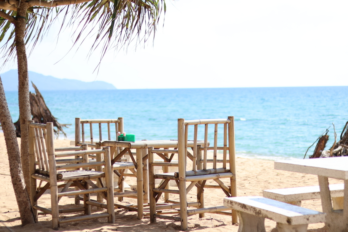 屋根付きのテーブルと、サラ、ビーチ側のテーブルがありました。